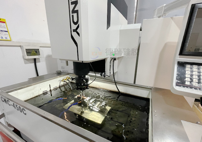獨立模具房,專業制模工程師,先進的數控加工中心,CNC電火花機,CNC線切割機,精密磨床,精雕機等設備,產品合模線精密可達到0.03MM,0模具錯位,支持單獨定制液態硅膠模具加工。